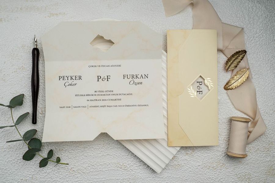 Davetiye Ofset, Varak Yaldız ve Serigraf Boya baskı tekniğine uygun olup, baskı fiyatı ayrı olarak ücretlendirilir.