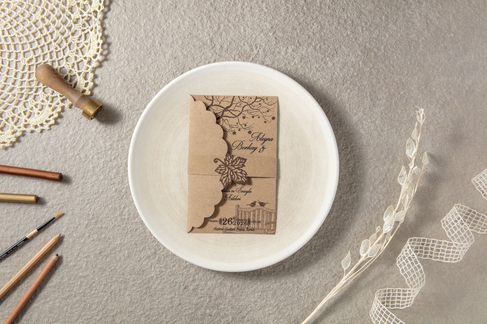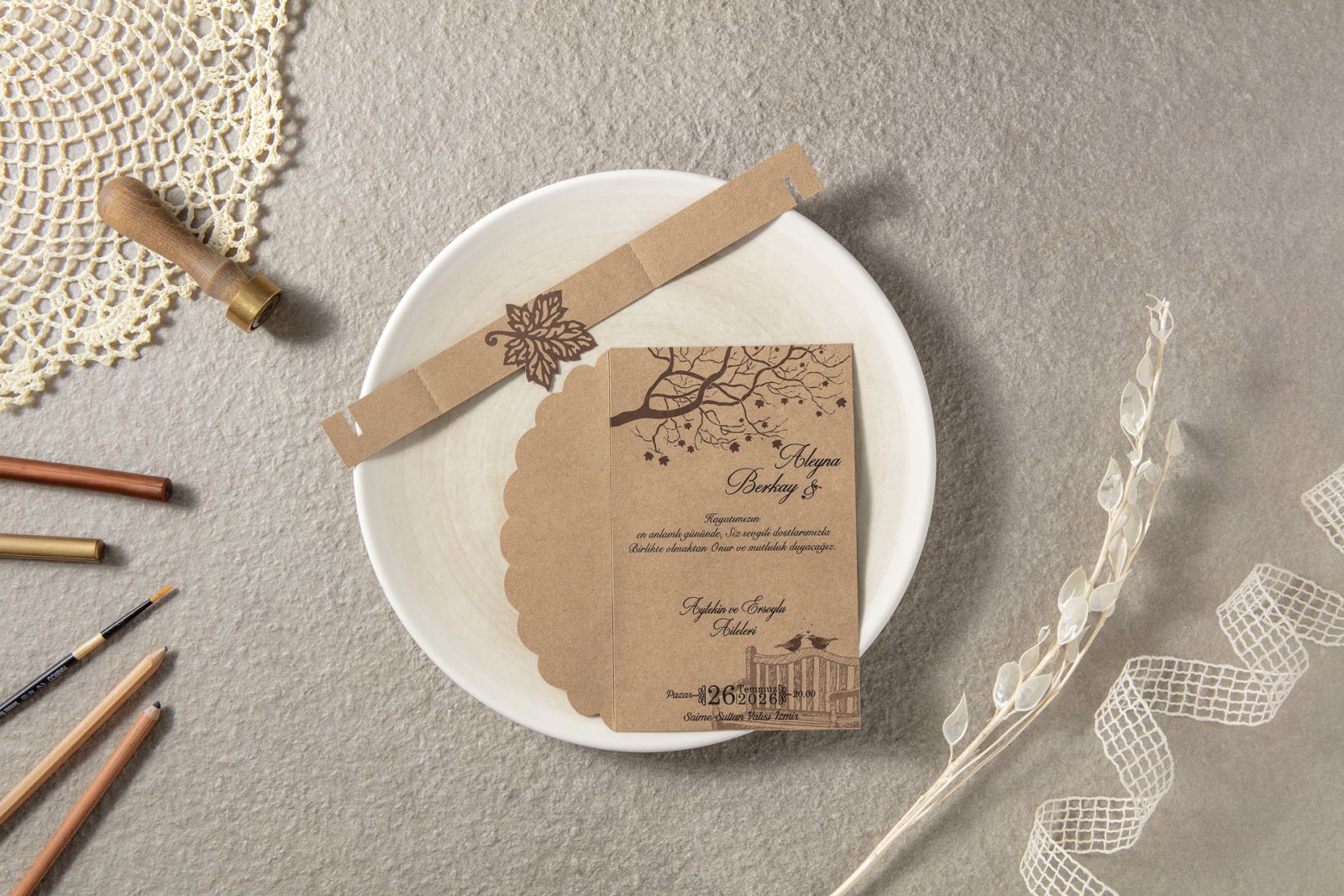 Davetiye aksesuarları ve zarf fiyata dahildir.