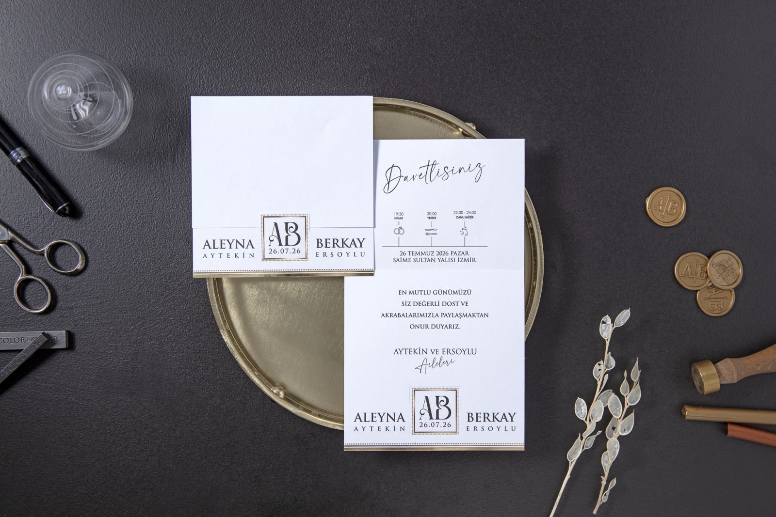 Davetiye aksesuarları ve zarf fiyata dahildir.