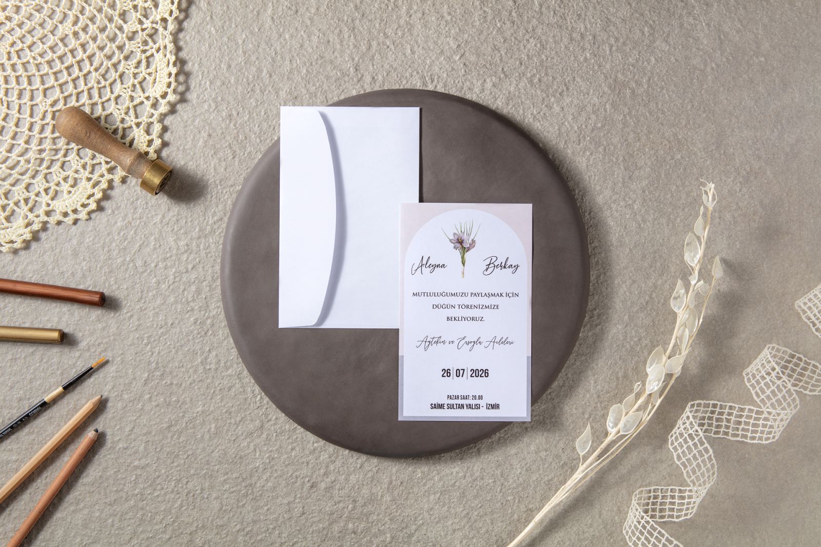 Davetiye aksesuarları ve zarf fiyata dahildir.