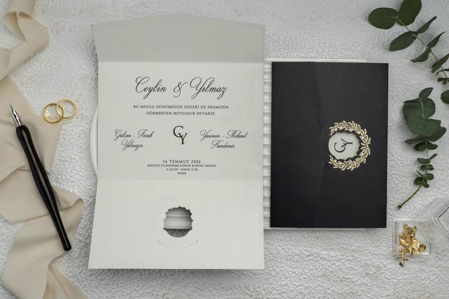 Davetiye Ofset, Varak Yaldız ve Serigraf Boya baskı tekniğine uygun olup, baskı fiyatı ayrı olarak ücretlendirilir.