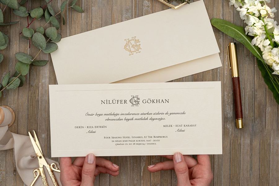 Davetiye aksesuarları ve zarf fiyata dahildir.