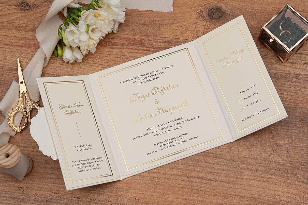 Davetiye aksesuarları ve zarf fiyata dahildir.