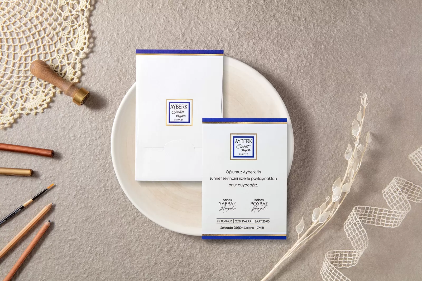 Davetiye aksesuarları ve zarf fiyata dahildir.